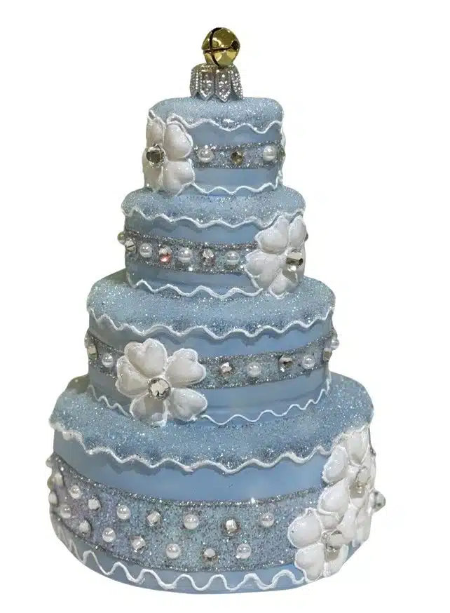 - Sentimental First Christmas Hand Painted Porcelain Blue and White Glitter Icing Wedding Cake Ornament