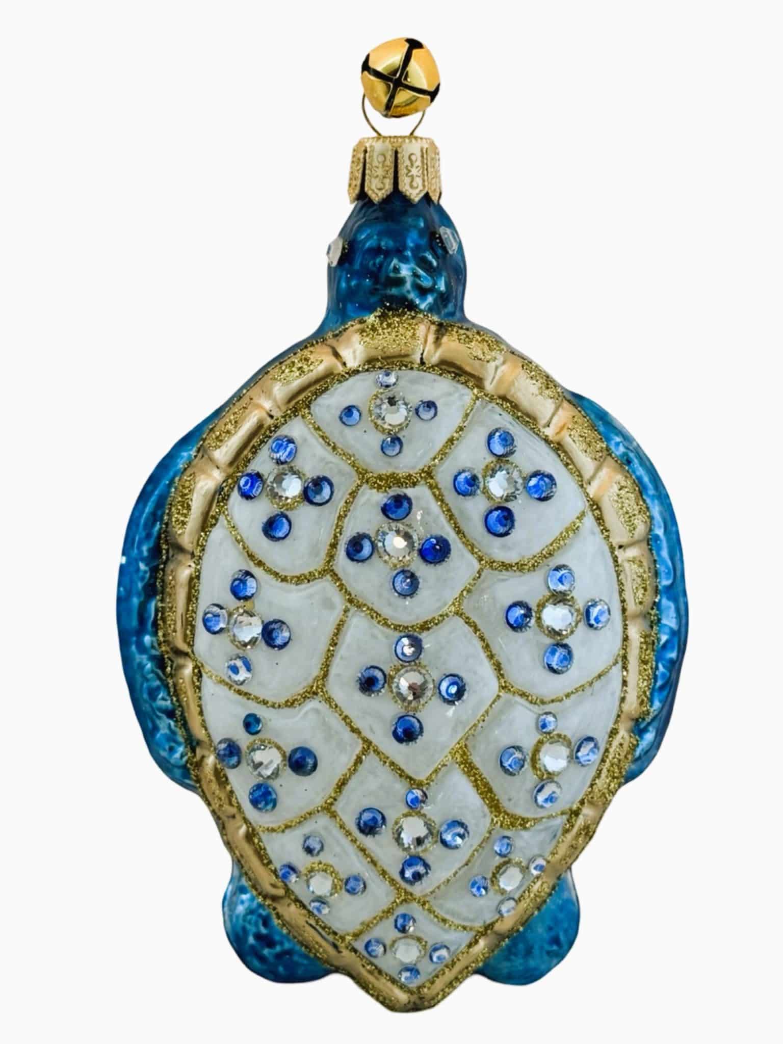 - Special Limited Edition Hand Painted Blue, White and Gold Jeweled Sea Turtle Christmas Tree Ornament