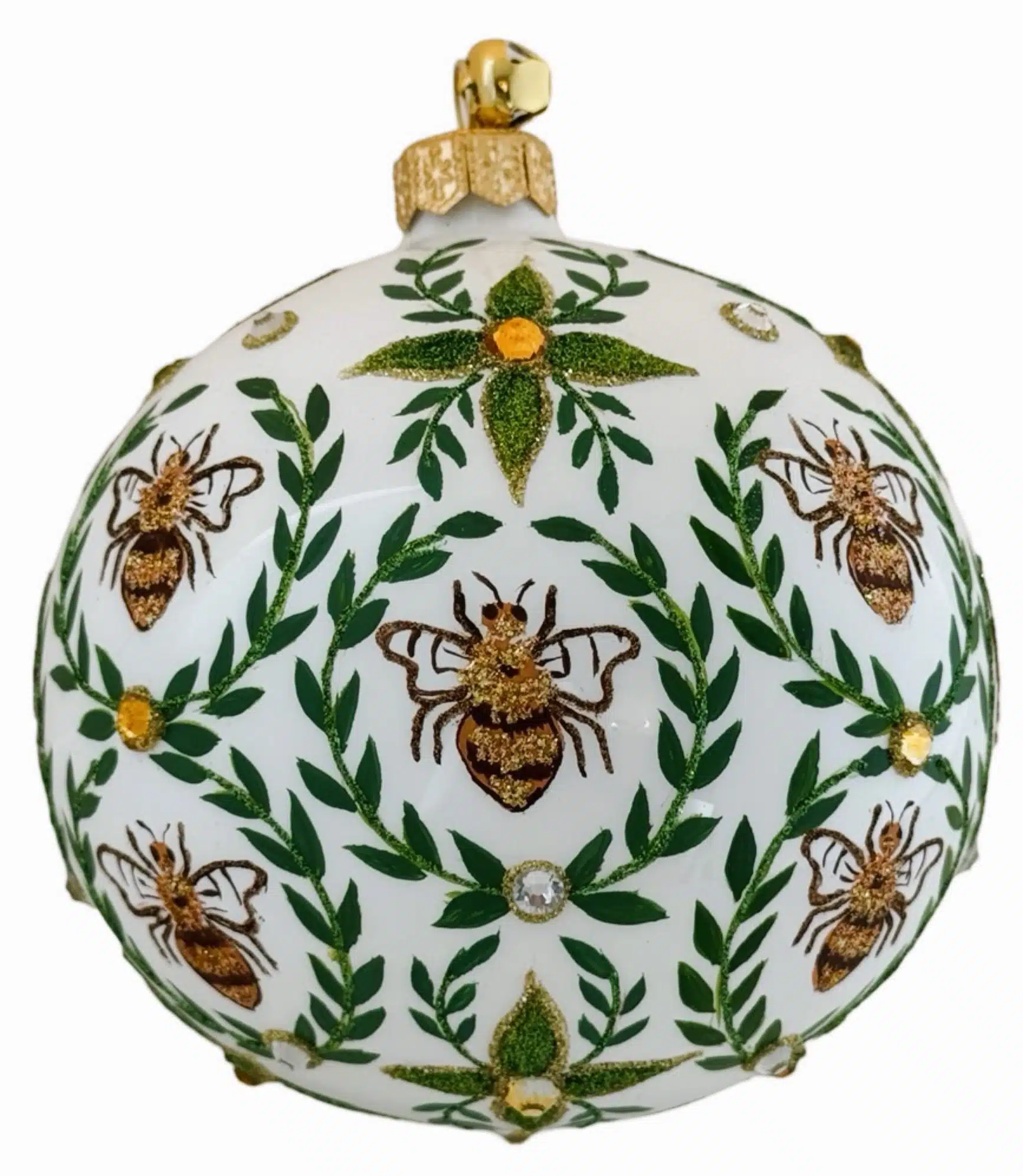 - Exquisitely Hand Painted Jeweled Popcorn Ball Ornament Trimmed with Fashion Pearls and Czech Crystals
