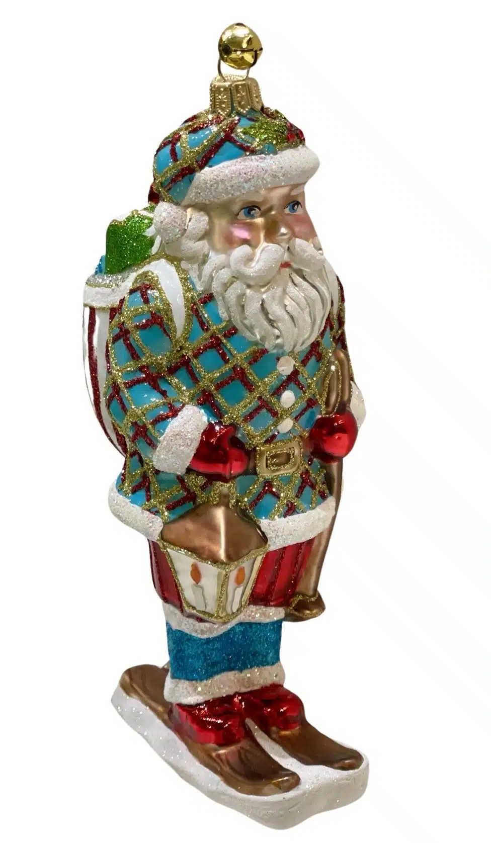 - Limited Edition Collectible Keepsake Holiday Skiing Santa Claus Ornament Holding a Lantern and Sack of Christmas Presents