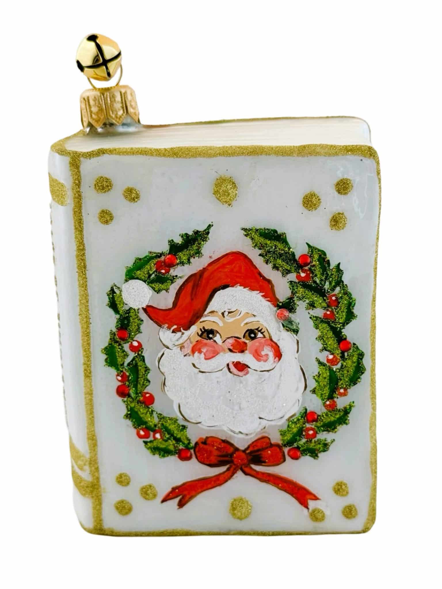 - Whimsical Exquisitely Hand Painted Festive Santa Claus and Christmas Wreath ‘Tales of JingleNog’ Book Ornament