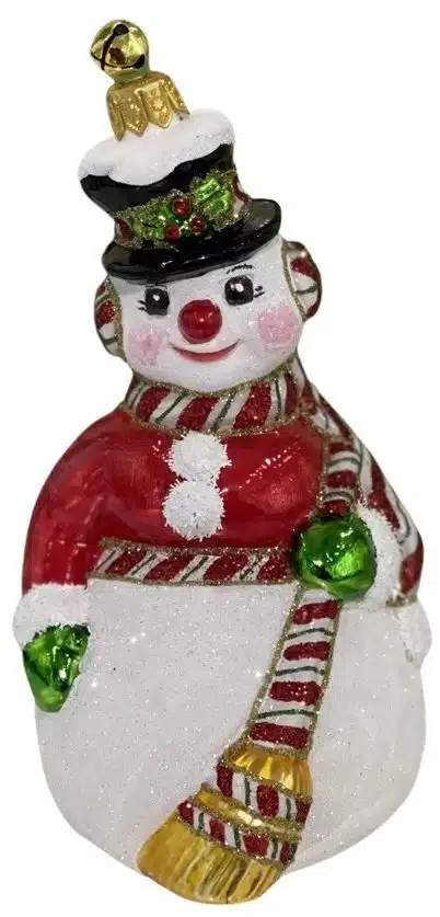 - Fun, Whimsical Hand Blown Glass Holiday Snowman Ornament