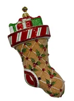 - Sterling Silver Lined Hand Blown Glass Gingerbread Stocking Christmas Tree Ornament