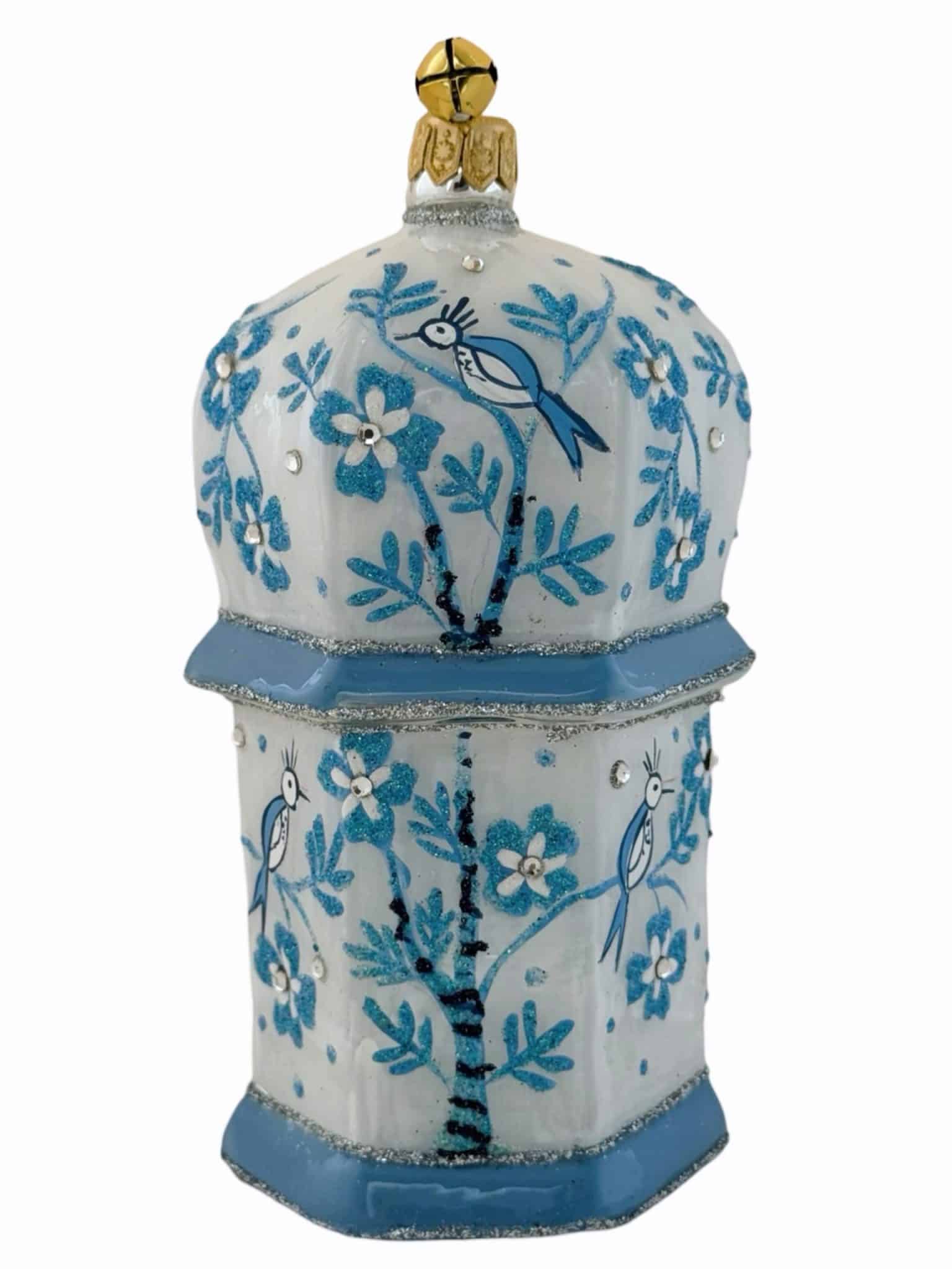 - Unique, Exquisite Hand Painted Blue and White Chinoiserie Patterned Birdcage Christmas Tree Ornament Decoration