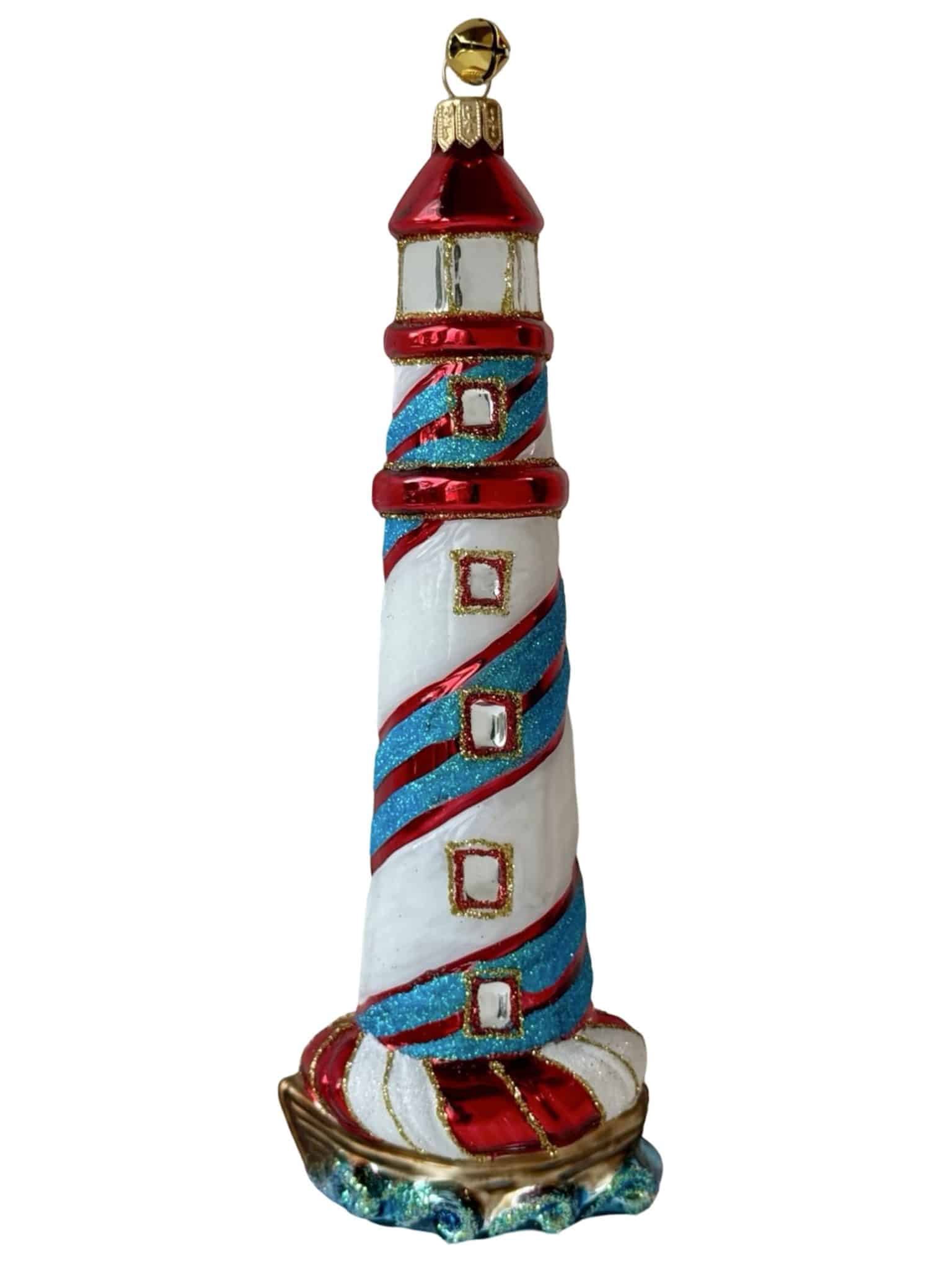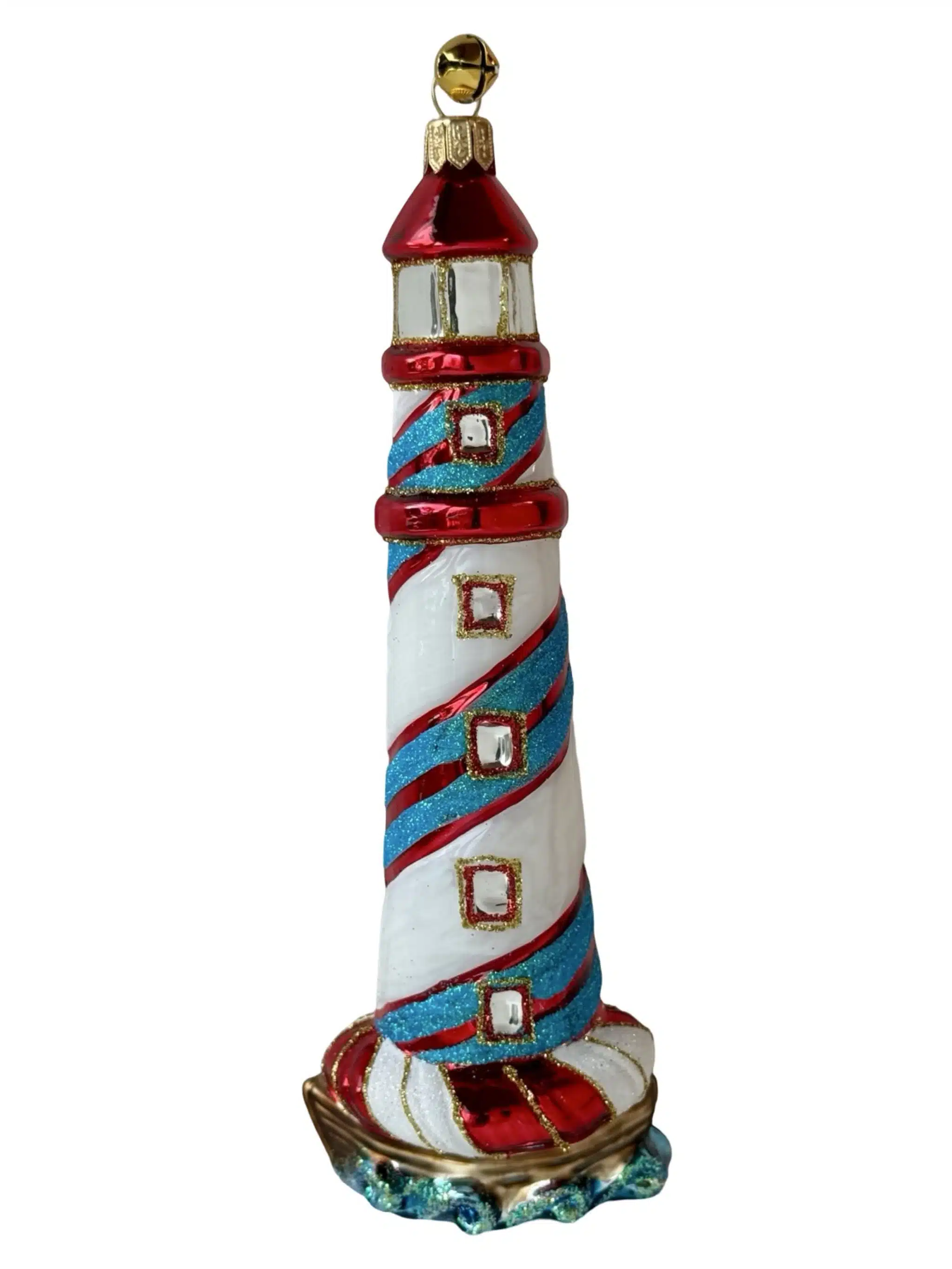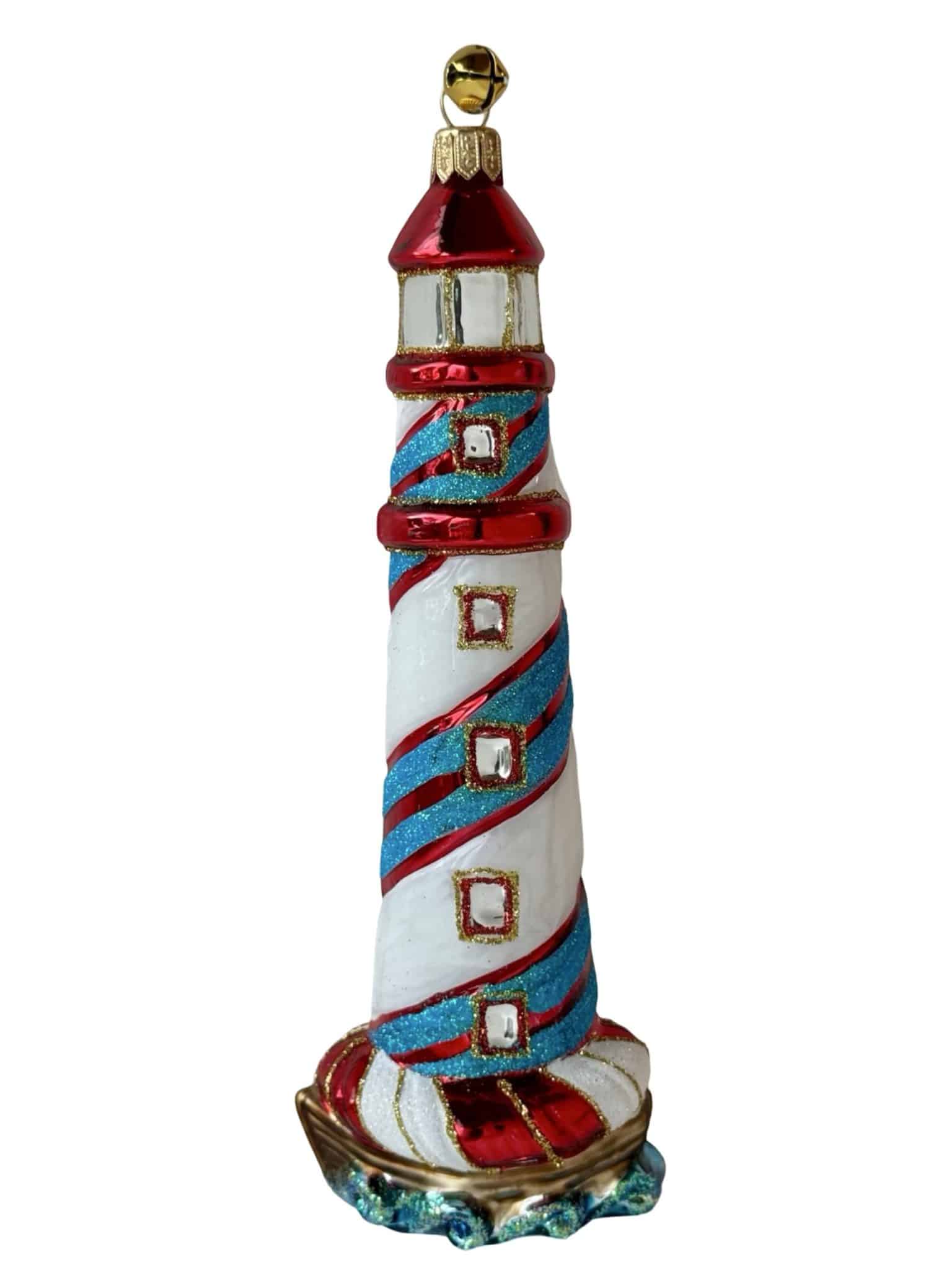 Sterling Silver Lined Hand Blown Glass Holiday Lighthouse Ornament