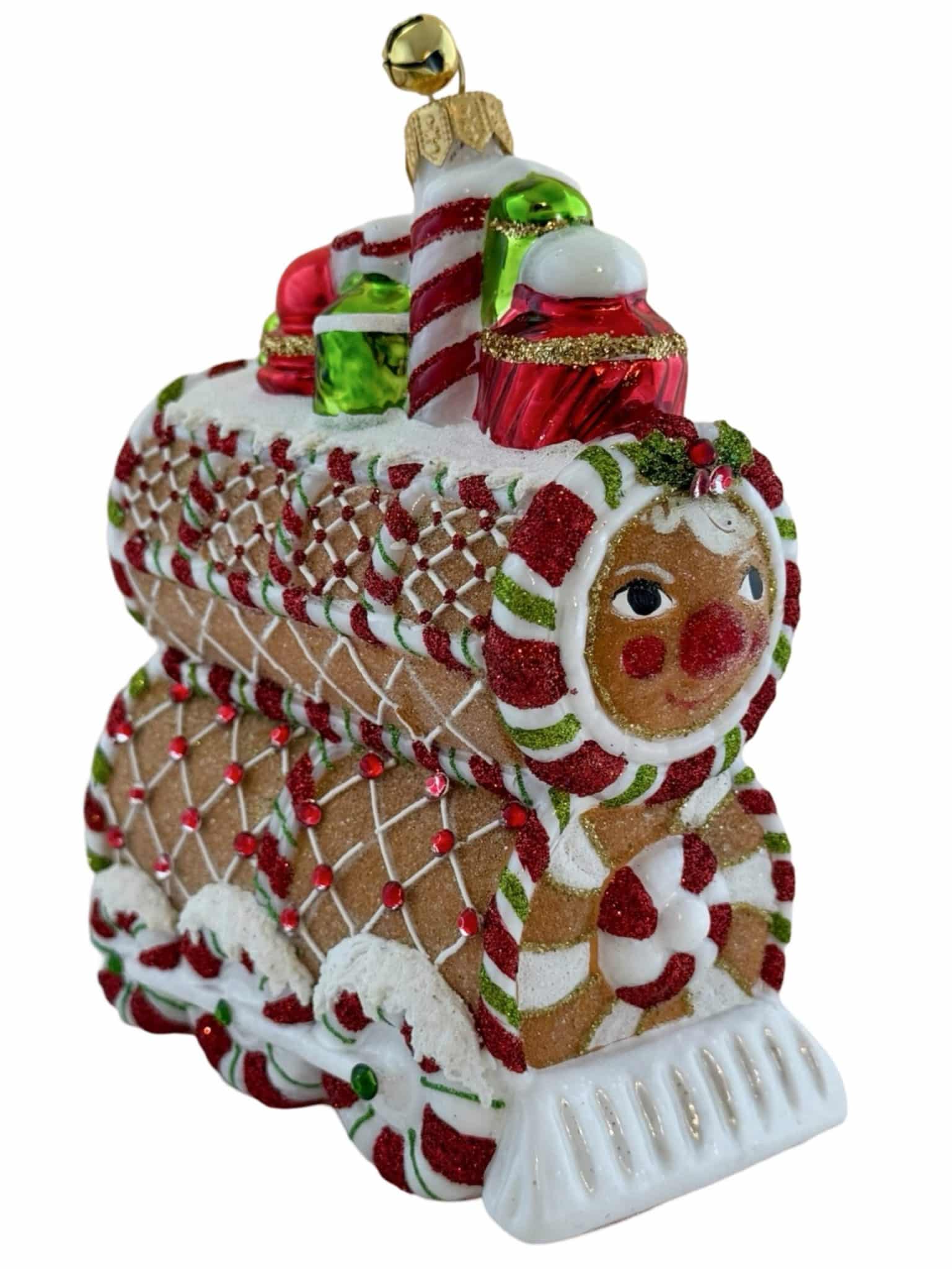 - Sterling Silver Lined Hand Blown Glass Gingerbread Train Ornament