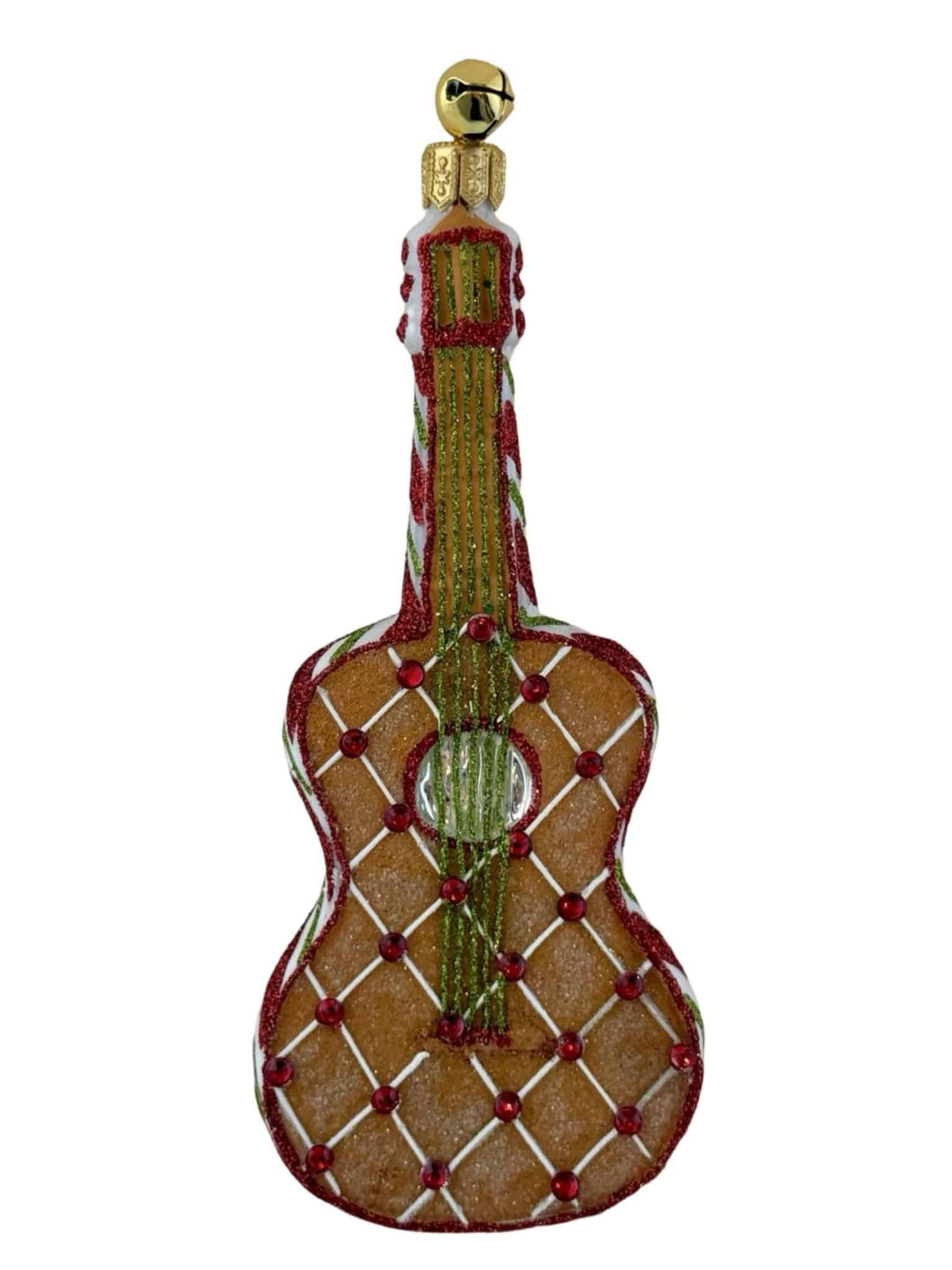 - Sterling Silver Lined Hand Blown Glass Gingerbread Guitar Christmas Ornament