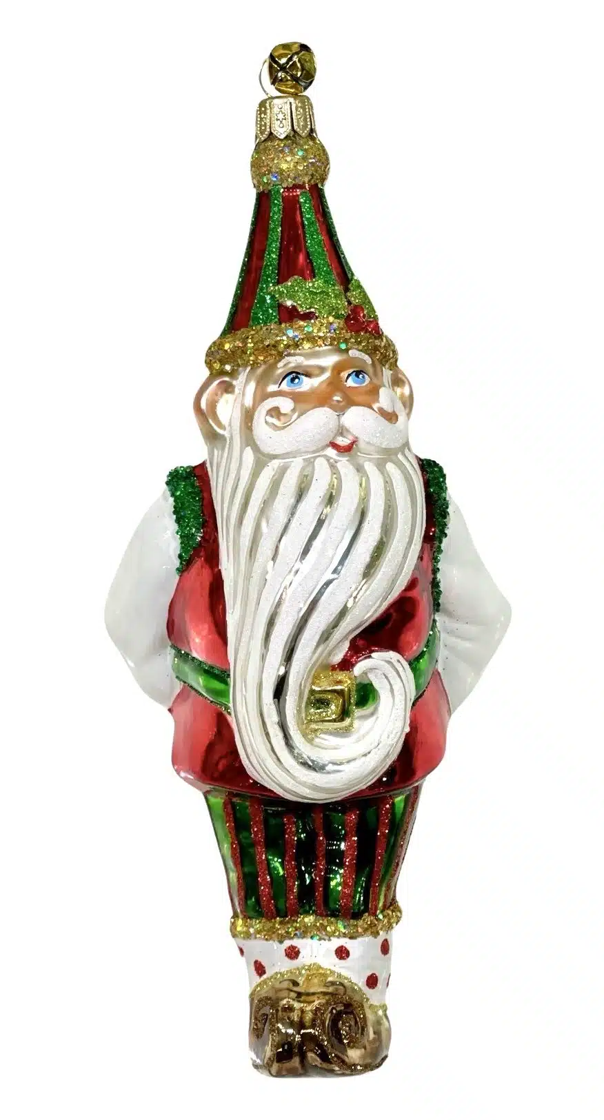 - Unique Limited Edition Collectible Red and Green Glitter Vest and Polka Dot Sock Christmas Elf Ornament Holding a Present