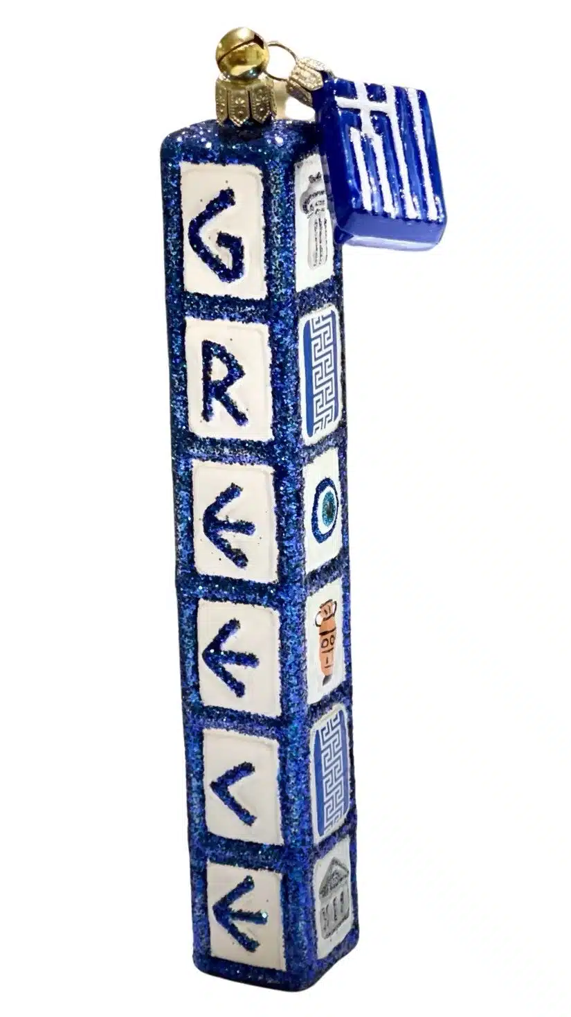 • Limited Edition Collectible Keepsake Greece Icons Ornament with Hand Painted Greek Column, Greek Key Pattern, Evil Eye, Vase and Athens Acropolis