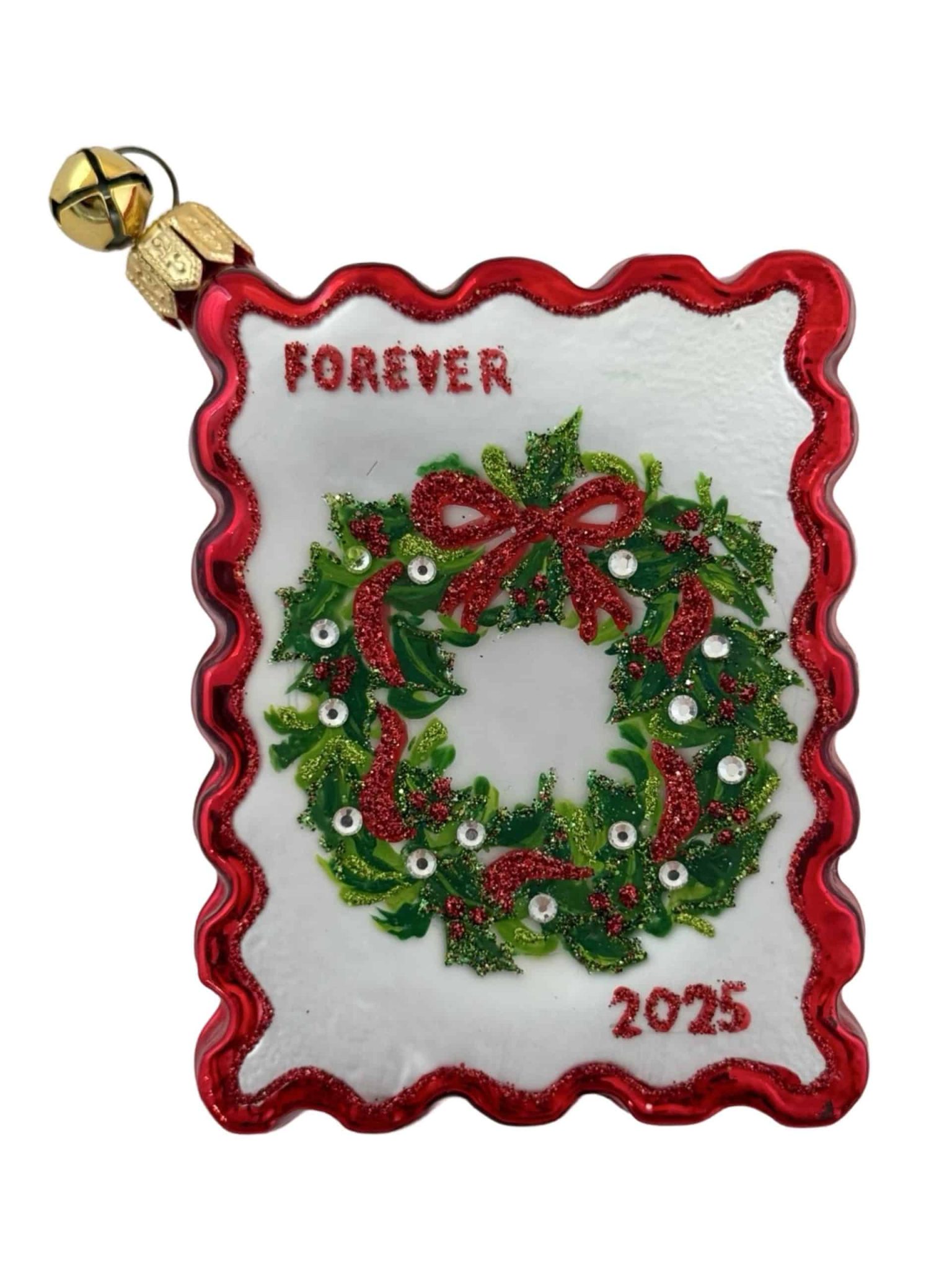 – Unique Holiday Home Décor Collectible Keepsake Holiday 2025 Mail Stamp Ornament Trimmed with Czech Crystals