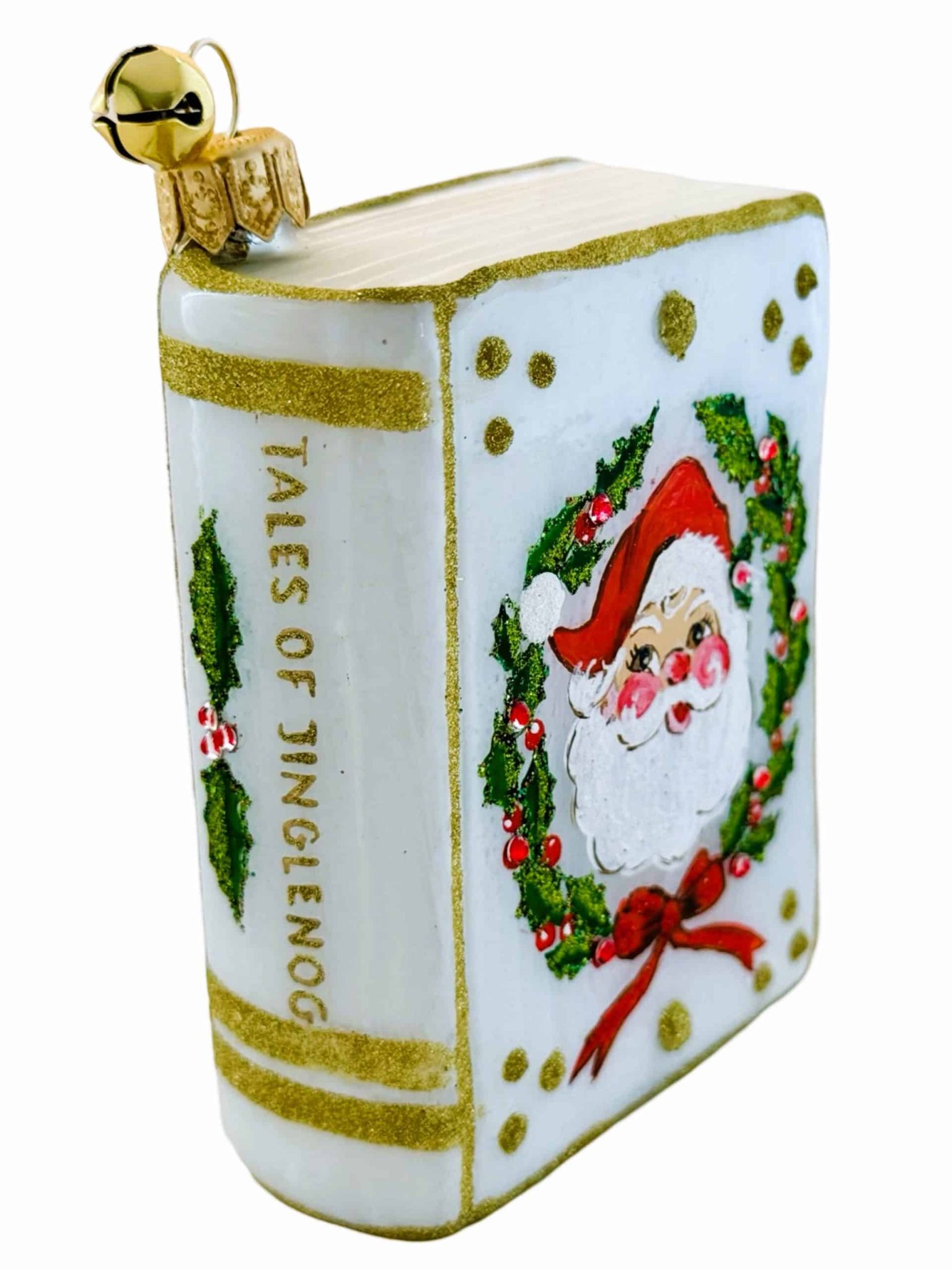 - Whimsical Exquisitely Hand Painted Festive Santa Claus and Christmas Wreath ‘Tales of JingleNog’ Book Ornament