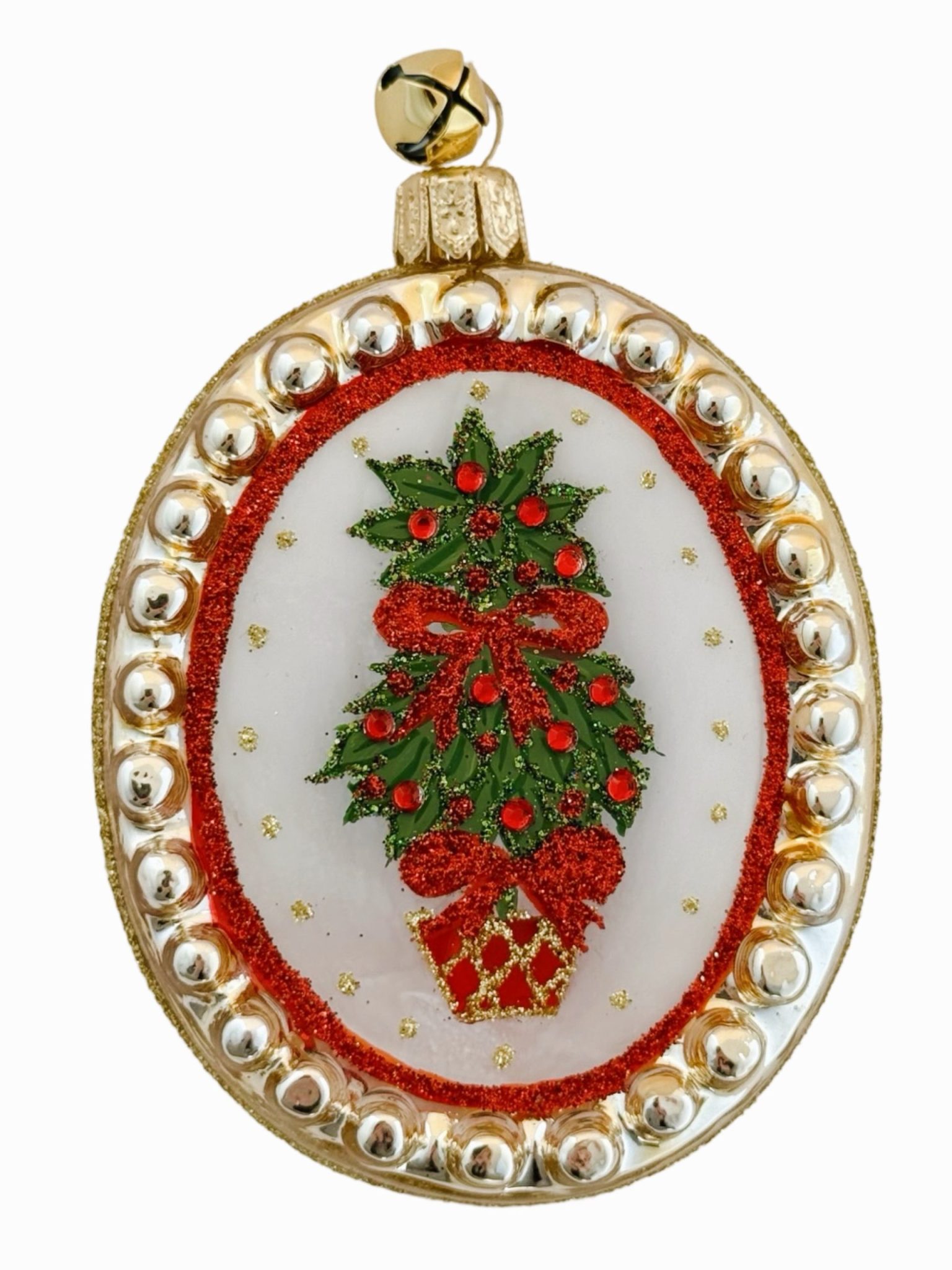 - Sterling Silver Lined Mouth Blown Glass Holiday Topiary Medallion Ornament