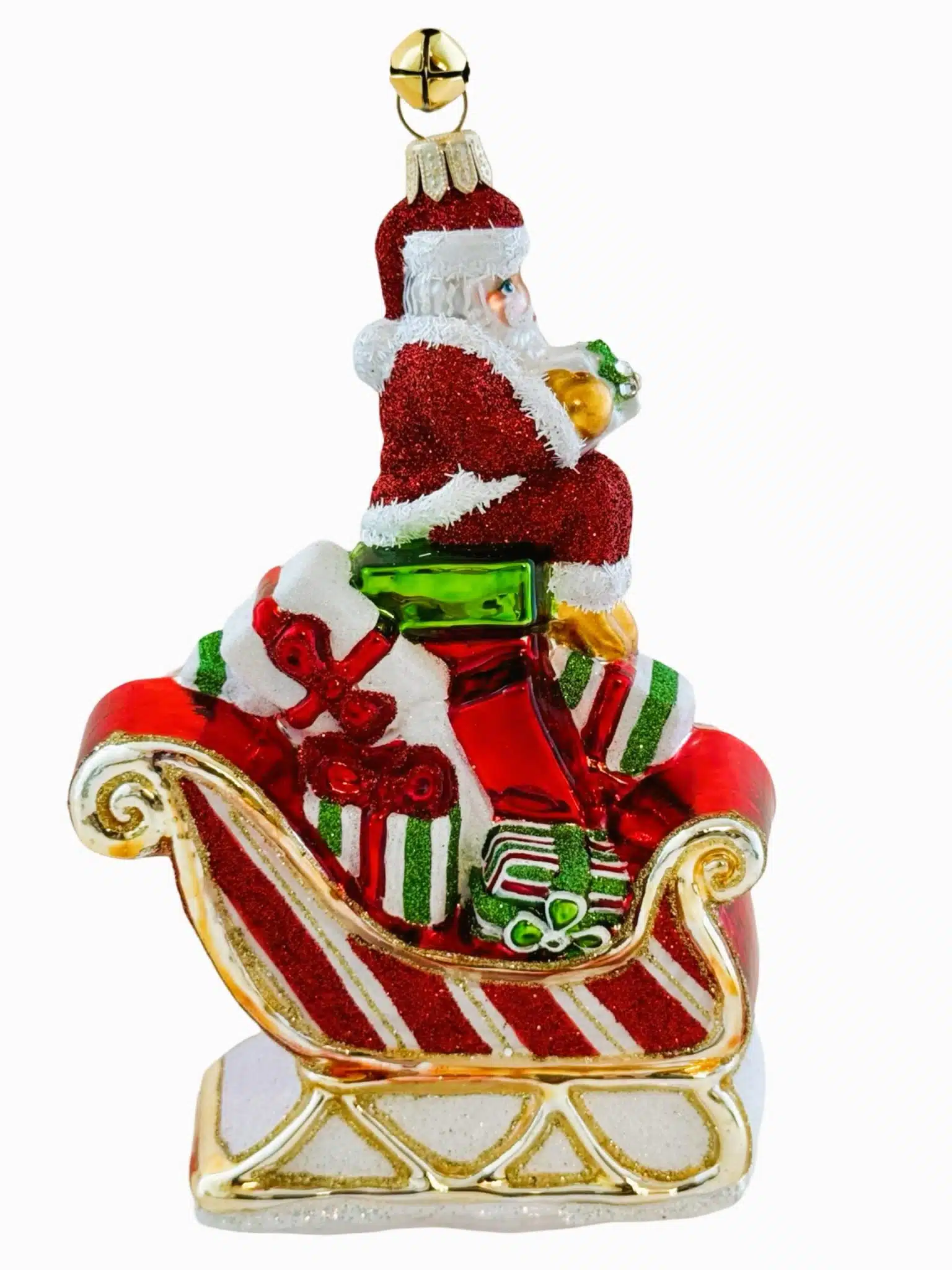 - Santa in Sleigh Christmas Tree Ornament Decoration Trimmed with Czech Crystals and Gold Tassel