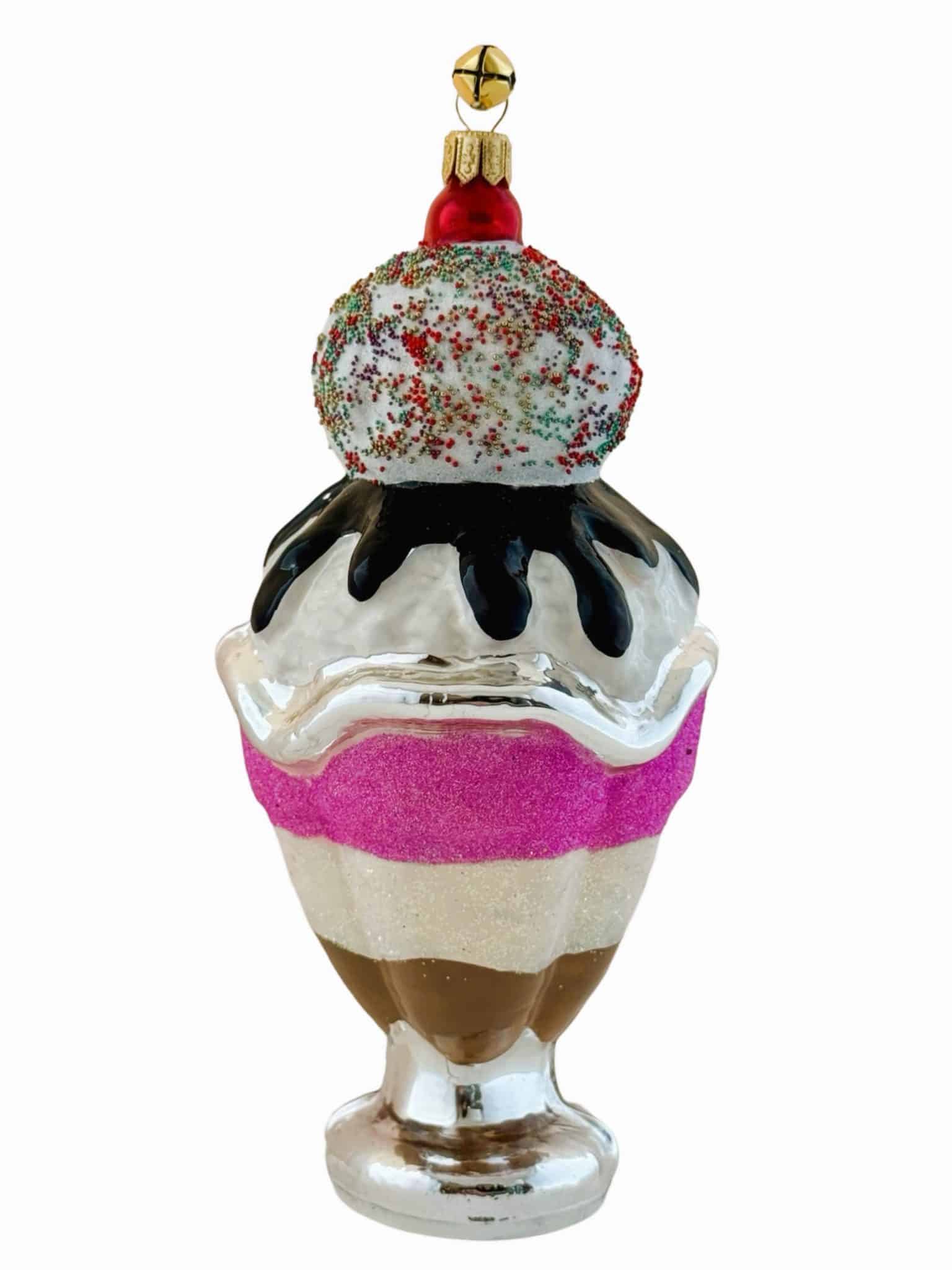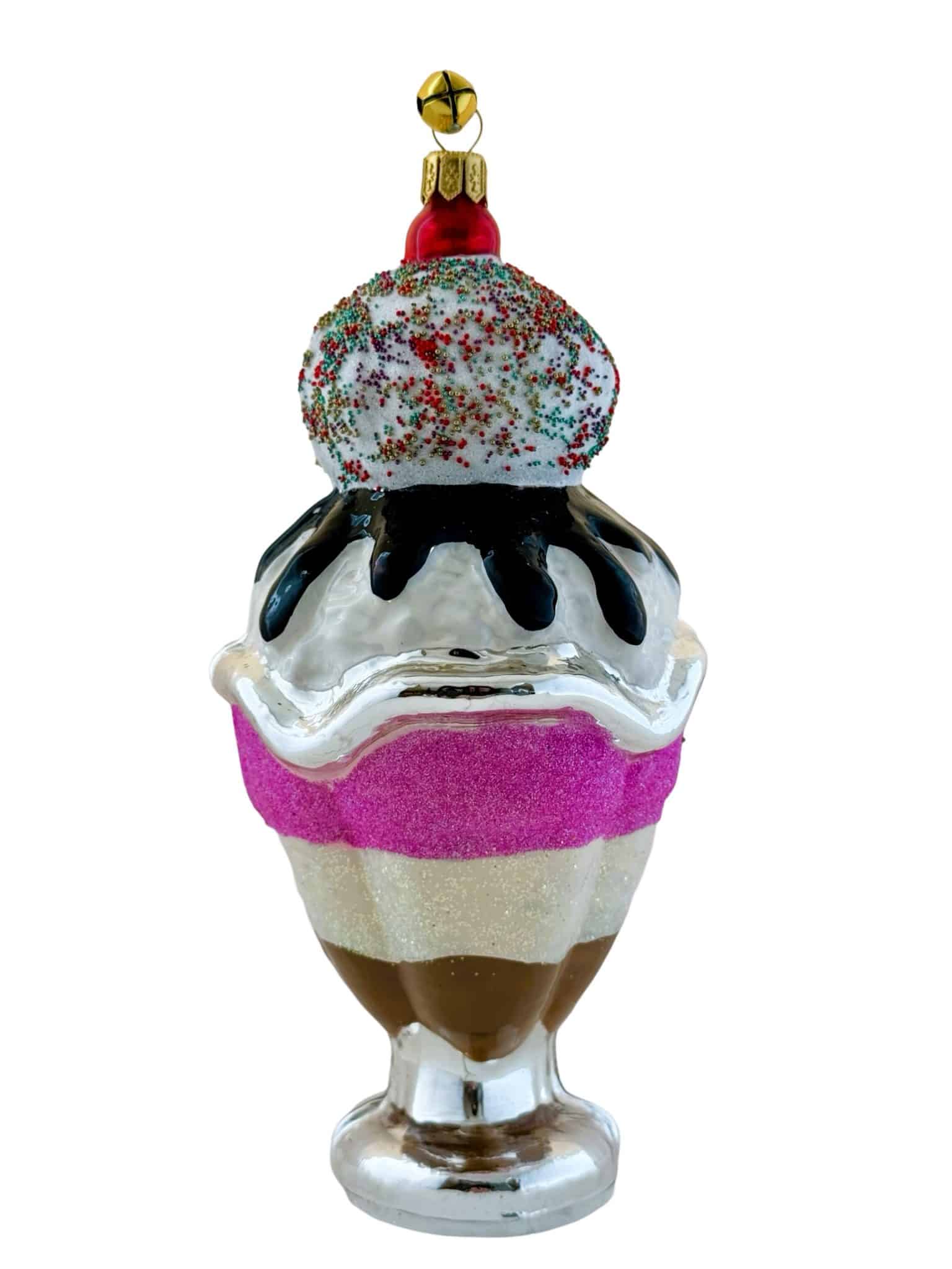 - Hand Painted Ice Cream Sundae Ornament Topped with Chocolate Syrup, Christmas Sprinkles and Silver Nonpareils