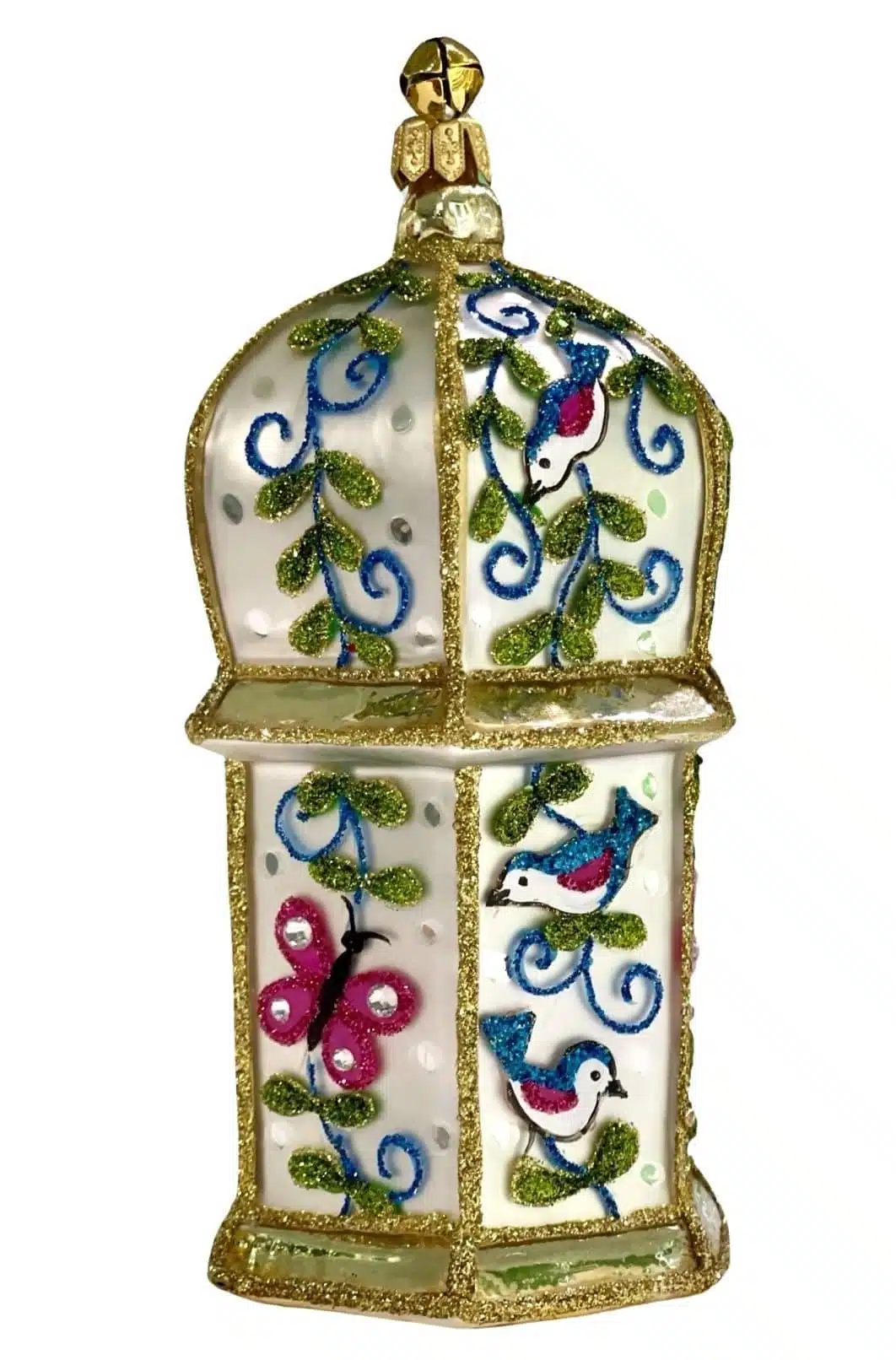 - Special Sterling Silver Lined Glass Keepsake Bird Cage Christmas Ornament