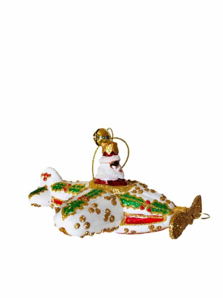 - Sterling Silver Lined Hand Blown Glass Santa in an Airplane Christmas Tree Ornament Decoration