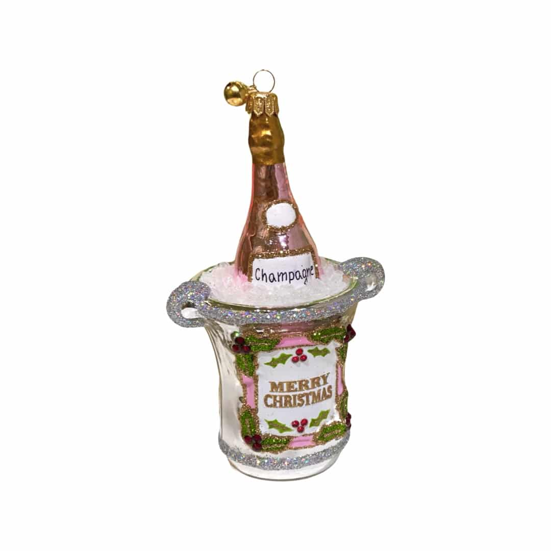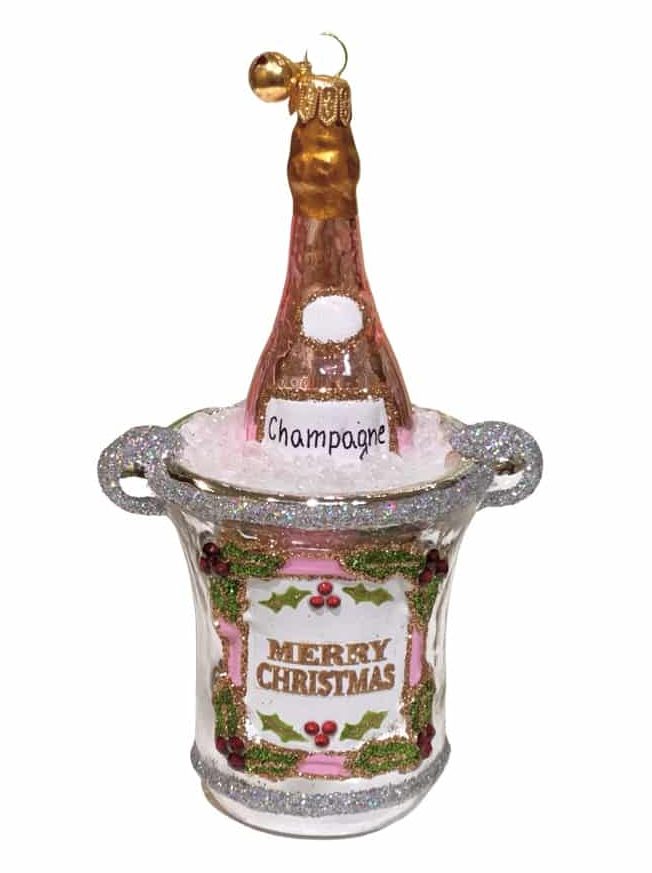 - Sterling Silver Lined Glass “Merry Christmas” Pink Champagne Bucket Ornament