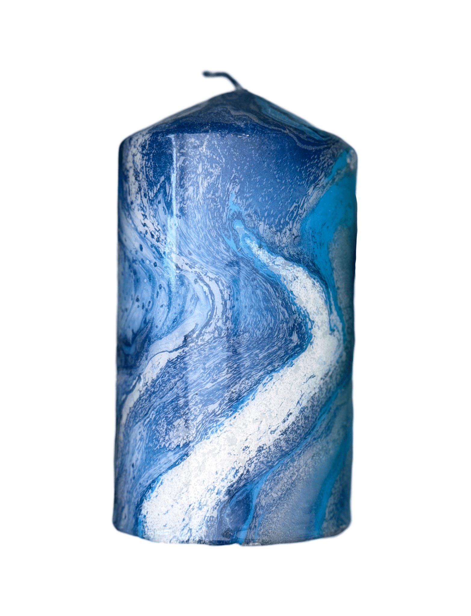 - Luxury Blue and White Italian Wax Marble Pillar Candle