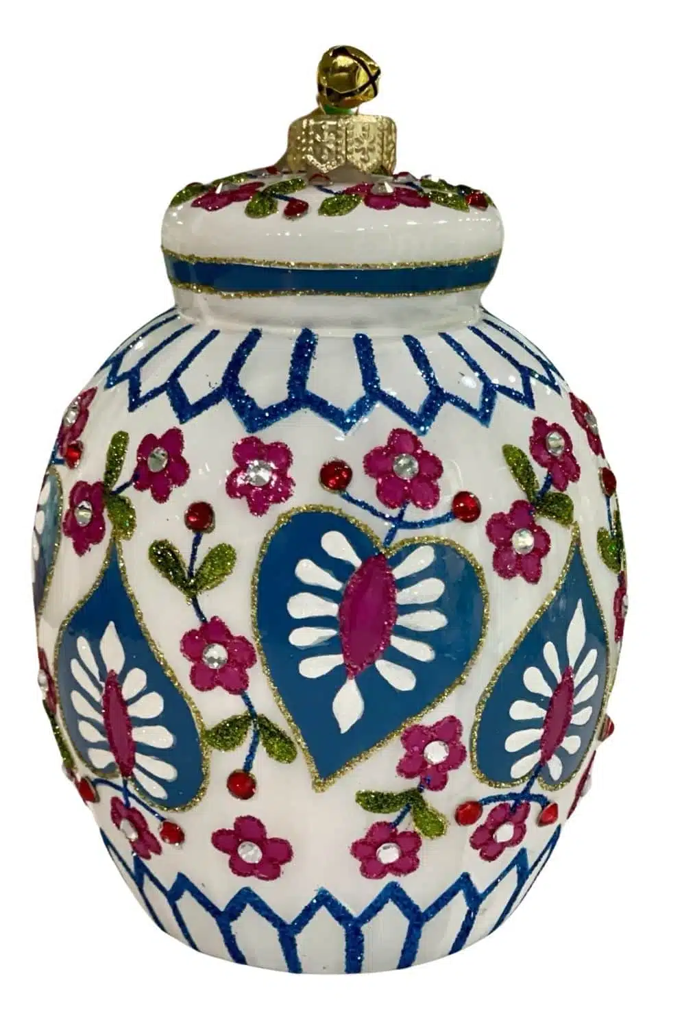 - Festive Red, Gold and Silver Hand Embroidered Pearl Adorned Red Holiday Christmas Stocking Decoration