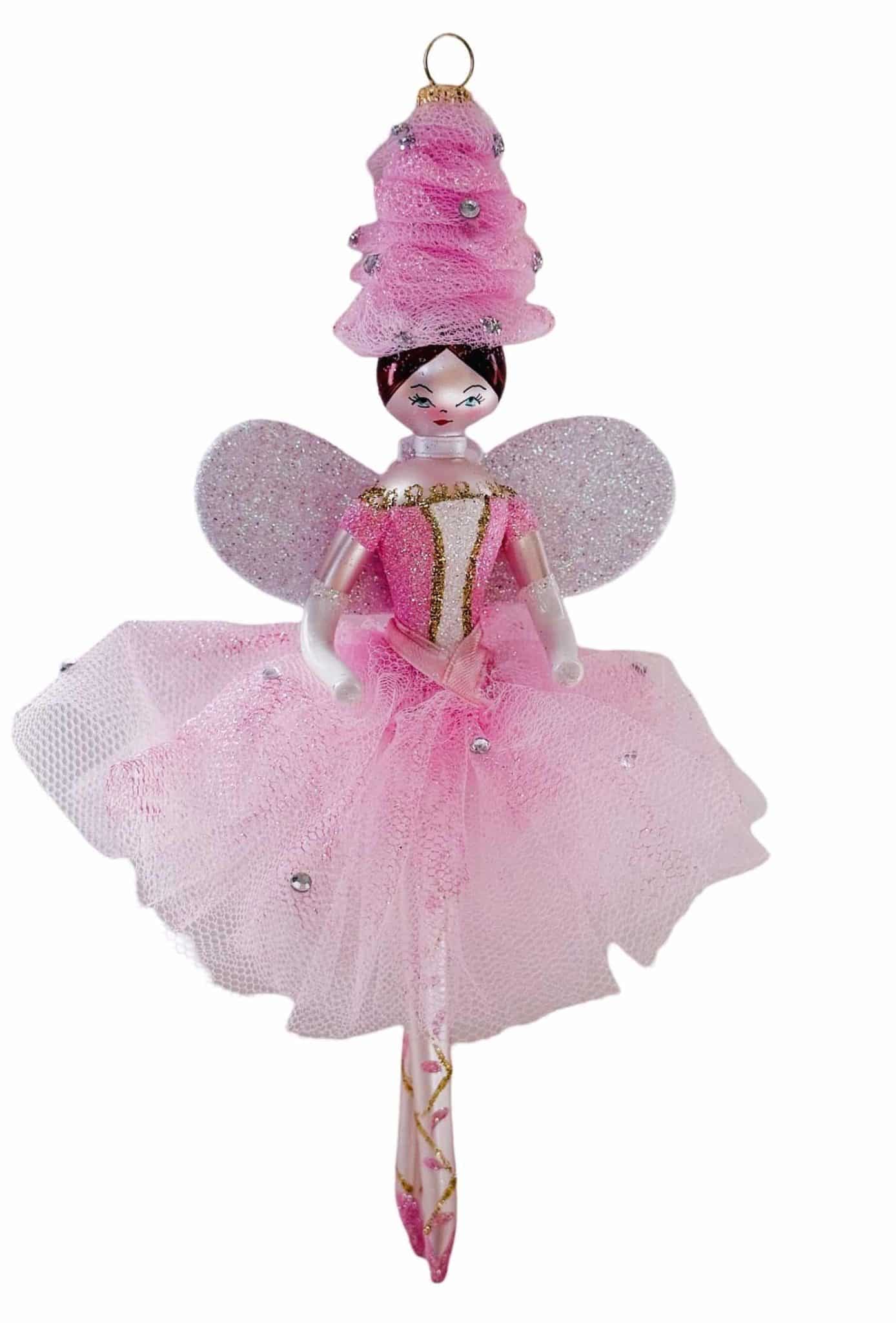 - Free Blown Italian Glass Pink Ballerina Fairy Christmas Tree Ornament
