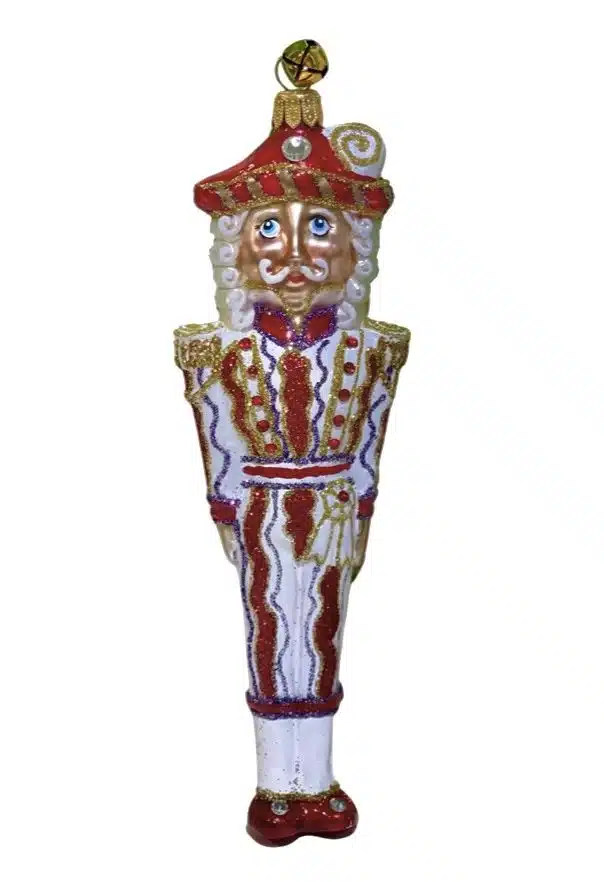 - Special Hand Painted White, Red and Purple Glitter Stripe Nutcracker Christmas Ornament
